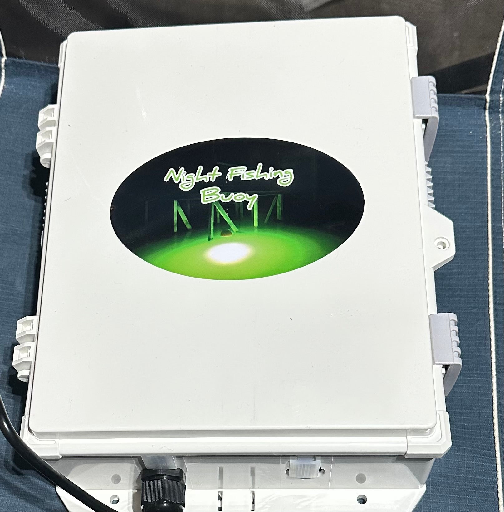 The Dock Kit is a permanent, dock-mounted night fishing light system designed for fixed installations. It features a weatherproof control box that securely mounts to your dock, providing reliable power management for the underwater light.